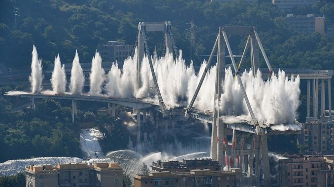El viernes 28 de junio se llevó a cabo la demolición controlada de los dos principales pilares que quedaban del puente Morandi de Génova, en Italia, el cual dejó 43 personas muertas tras colapsar parcialmente en agosto del 2018.