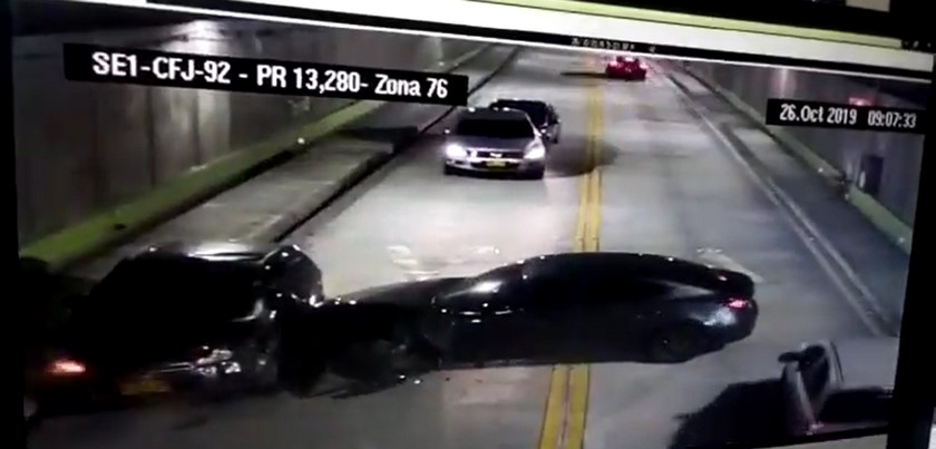 En imágenes de seguridad al interior de El Túnel de Oriente, quedó registrado el aparatoso accidente en el que se vieron envueltos cuatro vehículos.