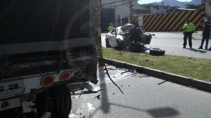 El suceso tuvo lugar en autopista sur antes de llegar al puente de Guayaquil cuando un vehículo, al parecer con exceso de velocidad, impactó contra la parte trasera de un tractocamión.