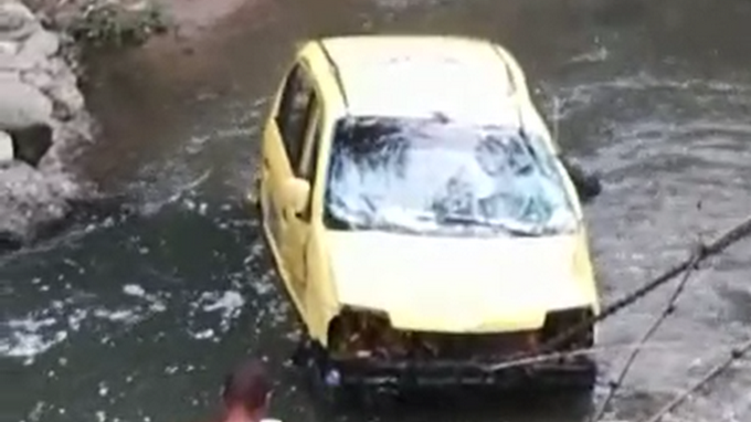 En las últimas horas de este sábado 21 de julio, el conductor de un taxi que transitaba por la avenida Las Vegas, al parecer perdió el control del vehículo, se salió de la vía y terminó flotando en la quebrada Ayurá.