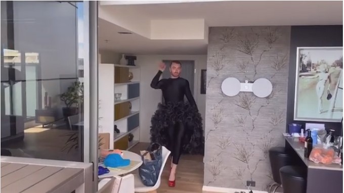 El cantante británico Sam Smith se mostró en tacones y en caminata ataviado de una falda al mejor estilo de la cubana Gloria Estefan.