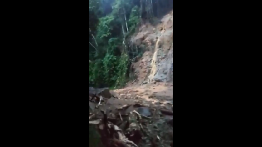En la mañana de este domingo 20 de octubre, las autoridades tuvieron que orden el cierre total de la vía que comunica al municipio de San Luis, debido a que amaneció tapada por un derrumbe que afectó toda la carretera.
