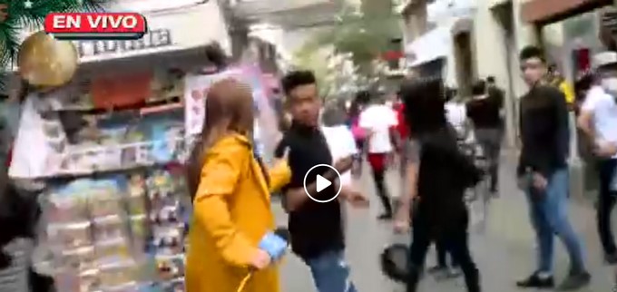 En video quedó capturado el momento en el que la chica interrumpió la entrevista para enfrentar al ladrón.