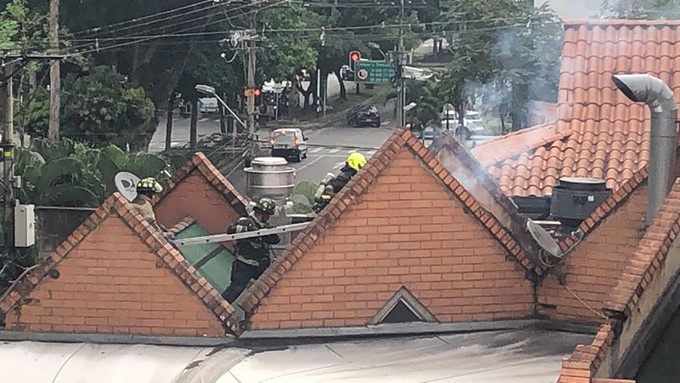 Según un video compartido por un ciudadano a Minuto 30, se puede ver como los bomberos subieron hasta el techo para intentar apagar las llamas que causaron pánico en la comunidad.
