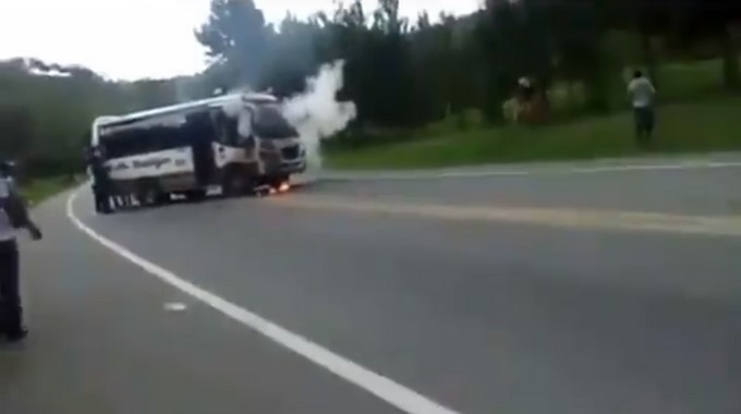 Por medio de un video grabado por personas presentes en la vía Panamericana, se dio a conocer esta situación de alteración al orden público, donde se denuncia que se habría prendido fuego intencionalmente al automotor.