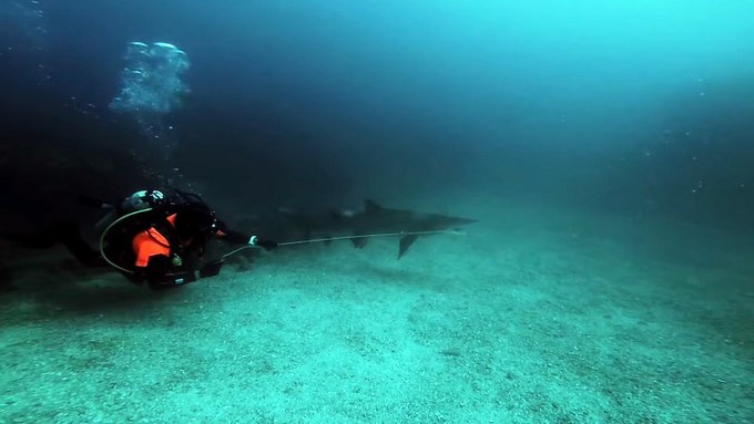 El buzo español resaltó que la red enredada en las fauces, podría haber llevado al tiburón a sufrir una muerte lenta y dolorosa.