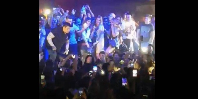Durante el concierto de reggaetón que estaba ofreciendo Álex Caniggia en Comodoro, uno de los asistentes capturó el momento exacto en el que el artista saltó al público.
