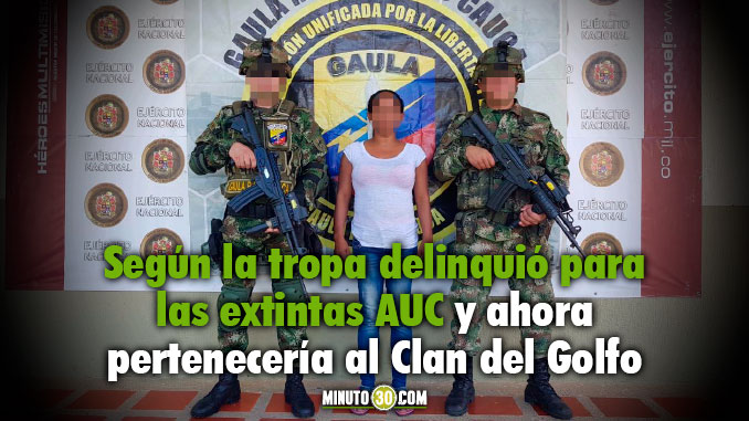 Según la tropa, la mujer al parecer haría parte del círculo más cercano de “Carlitos”, cabecilla del Clan del Golfo que delinque en el Bajo Cauca antioqueño y en San José de Uré Córdoba.