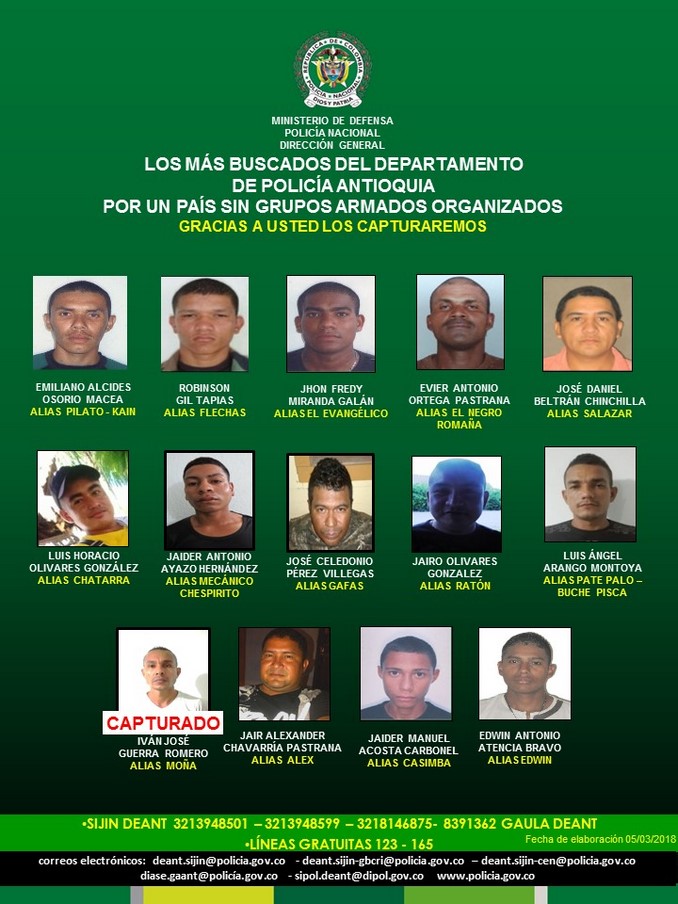 Cartel de los Más buscados en Antioquia.
