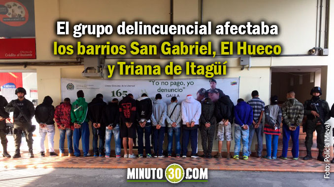 Según la Policía, los sujetos venían afectando la seguridad de los barrios San Gabriel, El Hueco y Triana de Itagüí, con actividades de extorsión y tráfico de estupefacientes.