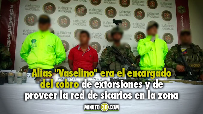 La captura se llevó a cabo en Piamonte, corregimiento de Cáceres. Hasta allí, y guiados por información de inteligencia militar, llegaron unidades especiales del Batallón de Infantería Aerotransportado N31 Rifles, el Gaula Militar Bajo Cauca con apoyo de la Policía Nacional y capturaron a “Vaselino”