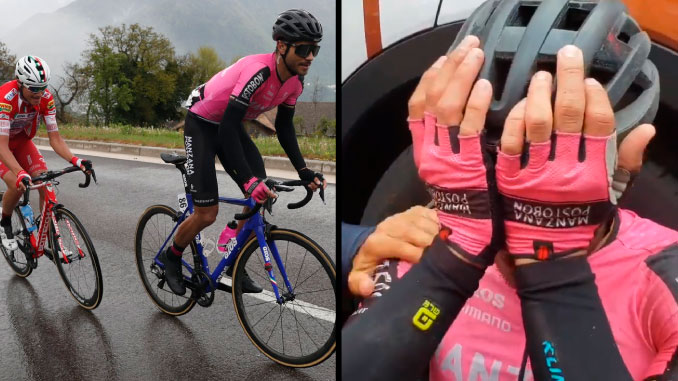 El pedalista fue reconocido por su entrega en las redes sociales del equipo rosa colombiano y dejó al país en el podio de esta etapa de la competición internacional de ciclismo.