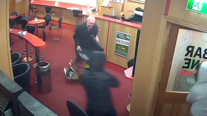 En un sitio de apuestas One Racing de Flanmire del Condado Cork, en Irlanda, tres atracadores entraron a robar la recaudación, pero se encontraron con la resistencia del único cliente en el lugar, un hombre de 85 años, Denis O’Connor.