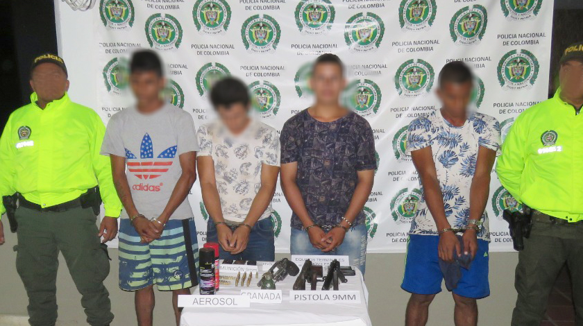 Según detallaron las autoridades entre los capturados se encuentran ‘Breidis’ ‘Ángel’ ‘Jader’ y ‘Huver’ y los menores de edad ‘Brandy’ y ‘Jairo’ ambos de 17 años.