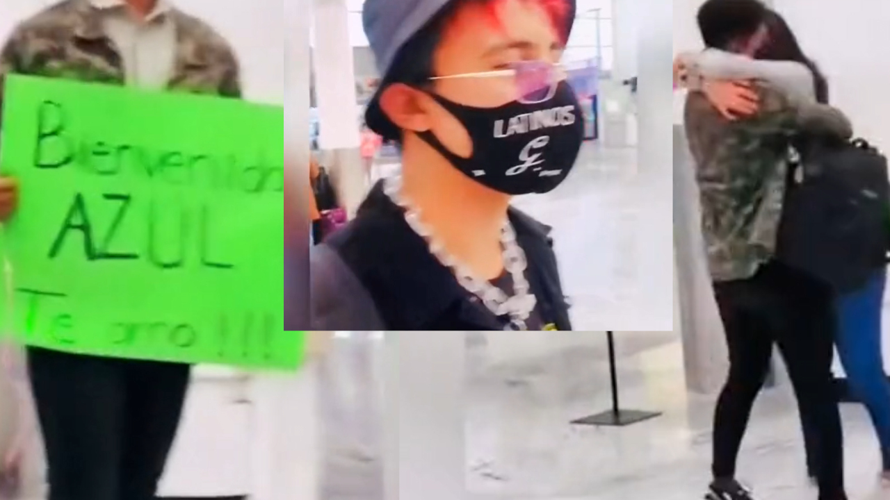 En el lado contrario al que se encontraba estaba un hombre con un globo y un letrero que decía ‘Azul te amo’, mismo nombre que tenia su pareja.