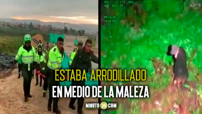 A pesar de las dificultades del terreno y la oscuridad, la Policía llegó hasta zona boscosa para tratar de ubicar al hombre y lo pudo lograr encontrándolo arrodillado en medio de la maleza y llevándolo a un lugar seguro para evaluar su condición de salud.