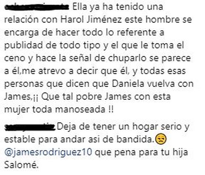 Una cuenta de la red social, hizo repost a la grabación, donde la ex esposa de James Rodríguez, ha recibido fuertes críticas por parte de los internautas, que con comentarios como: “Que tal pobre James con esta mujer toda manoseada!!”, arremeten en su contra.