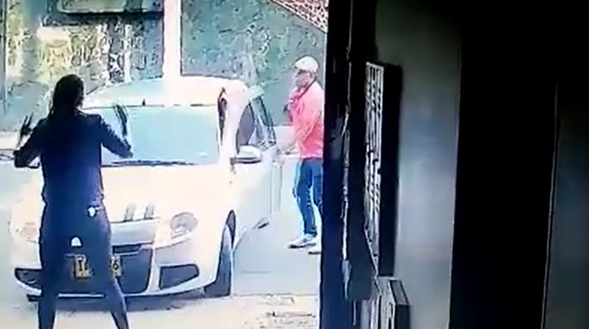 Como se observa en el video que registraron las cámaras de seguridad de la vivienda, el sujeto aprovecha que la mujer está saliendo del parqueadero, para intimidarla con un arma de fuego.
