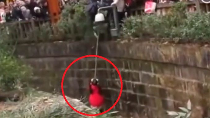 La pequeña vestía un abrigo rojo y cayó alrededor de 6,5 pies en el recinto de osos pandas, mientras la multitud se reunía para observar a las criaturas exóticas. Sin embargo, los mamíferos miraron con curiosidad a la niña, pero no hicieron ningún intento para lastimarla.