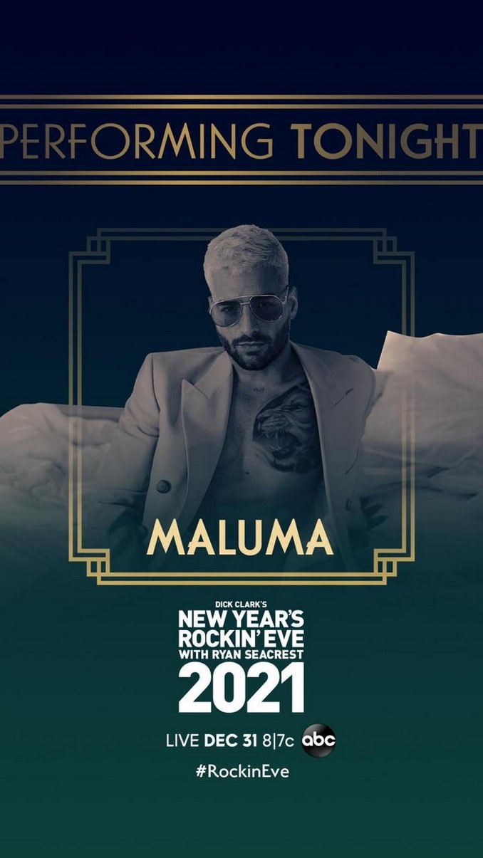 El paisa estará despidiendo el 2020 junto a Doja Cat, Billy Porter, Cyndi Lauper y Jimmie Allen, Miley Cyrus, Jennifer Lopez, entre otros.