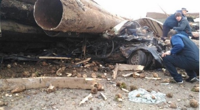 Ocurrió en una vía en Rusia, cuando el conductor del vehículo pequeño- un señor de 80 años, ignoró la señal de tránsito y se metió entre dos vehículos de carga pesada.