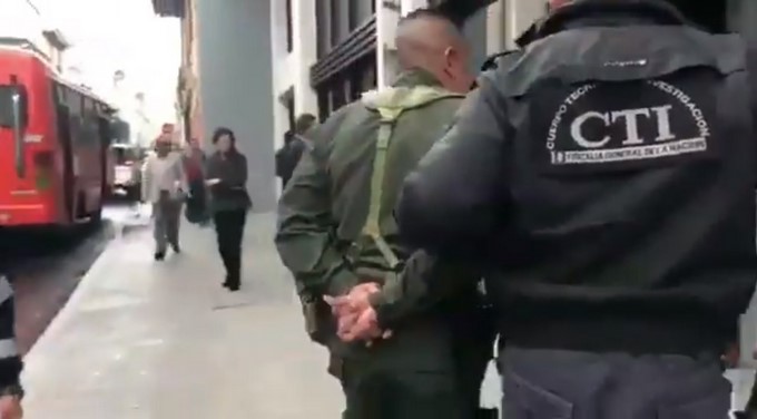 Policía capturado durante procedimiento, foto: Fiscalía Colombia.