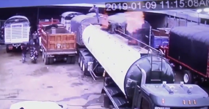 Dos trabajadores que se encontraban soldando una tapa de un camión cisterna en el municipio de Ocaña, Norte de Santander, resultaron heridos tras provocar la explosión de los gases acumulados del vehículo que normalmente transporta gasolina.