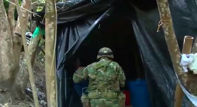 El Ejército aseguró que logró destruir este cristalizadero para el procesamiento de pasta base de coca, en el corregimiento Puerto Bélgica, y en el lugar fueron encontrados insumos líquidos y sólidos utilizados para el procesamiento de alcaloides.