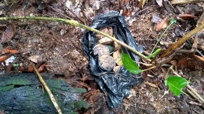 Escondido entre la vegetación en un camino de herradura fueron halladas 10 minas antipersonal y una granada de mano, sin número de serie.