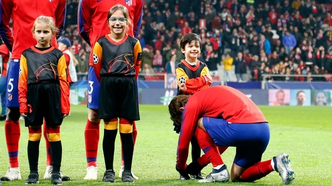 Antoine Griezmann protagonizó una de las imágenes virales tras la quinta jornada de la fase de grupos de la Liga de Campeones, cuando en medio de los actos protocolarios tuvo un gran detalle con el niño que le acompañaba y lo dejó con una inmensa sonrisa.