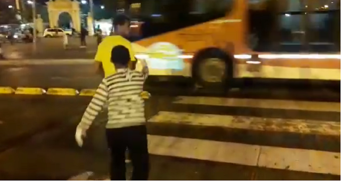 Vídeo. El mimo de una campaña de seguridad vial lo salvó de morir atropellado