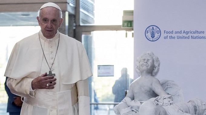 El pontífice pronunció un discurso durante la ceremonia por el Día Internacional de la Alimentación en la sede de la Organización de la ONU para la Alimentación y la Agricultura (FAO), la primera vez que lo hace en persona a diferencia de otros años, cuando suele enviar un mensaje.