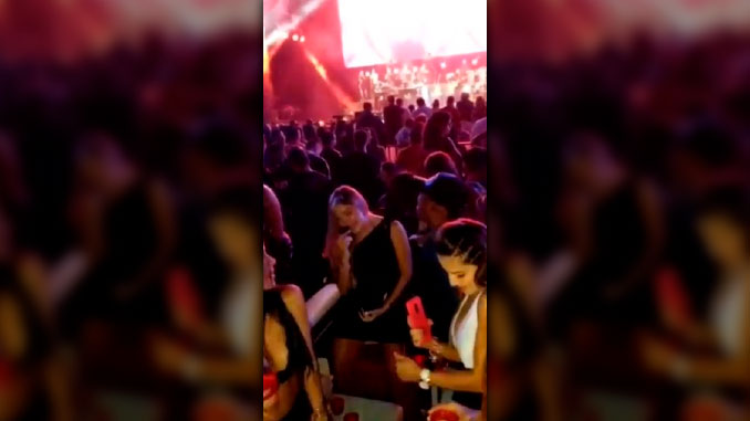 El clip fue grabado en el concierto del salsero Marc Anthony, en el que deja ver al ‘Tino’ contento mientras baila con tres mujeres a su alrededor que también se veían felices disfrutando de la compañía del exfutbolista.