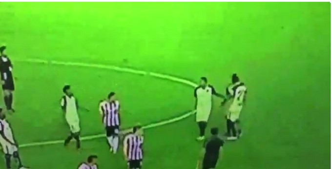 Los dos jugadores fueron captados en un momento de alta tensión que casi termina en golpes de no ser por la oportuna intervención de Aldo Leao Ramírez.