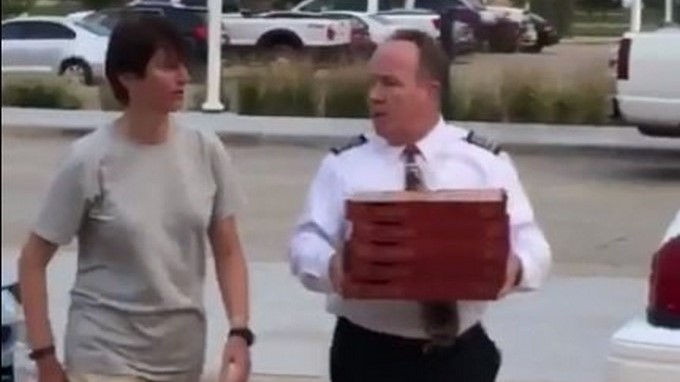 El capitán de vuelo no solo ayudó a repartir las rebanadas de pizza a los 159 frustrados pasajeros sino que las pagó de su propio bolsillo.