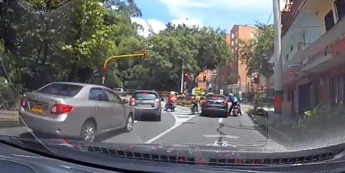 Los hechos, según los reportan en redes, ocurrieron cerca al hospital Manuel Uribe Ángel, al sur del Valle de Aburrá. El video fue grabado dentro de un vehículo que iba detrás del auto implicado y de las motocicletas, por lo que pudo evidenciar el momento del hurto, sin embargo, por la lejanía en la que se detuvo, las placas de las motocicletas no pudieron ser identificadas.
