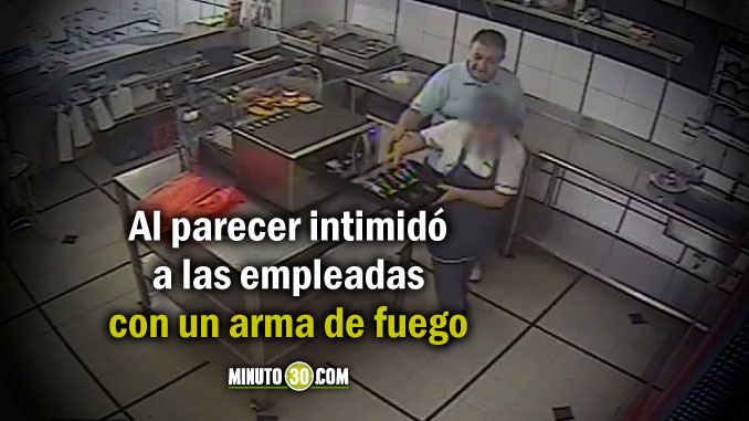 Según la denuncia ciudadana, el hombre ingresó armado y procedió a intimidar a las empleadas a quienes obligó a encerrarse en un cuarto trasero; como se observa en las imágenes, el hombre regresó por una de ellas.