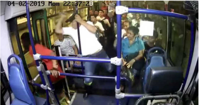 En las imágenes se ve a los dos hombres entrando al bus para solicitar todo el producido al conductor, cuando creen que ya se van ‘invictos’, el pasajero se levanta y con arma blanca le ocasiona varias heridas a uno de los ladrones.