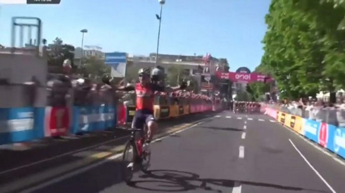 Luka Pibernik rose the hands today… but he didn't know that there was one lap left!… https://t.co/Y6WmNnAfFI pic.twitter.com/j9Sl3SV4Xb— L'Actu du Cyclisme (@lactucyclismeIG) 10 de mayo de 2017