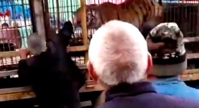 Watch this heart-in-mouth moment when a circus tiger bites the hand of an old man who feeds it on a street in Henan, central China, on Wednesday. The tiger was caged there before performance at night. The man has been sent to hospital. pic.twitter.com/ICEQFNwtvC