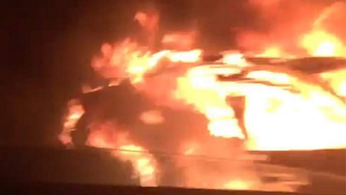 El vehículo perdió el control y se estrelló con un costado del puente Brooklyn-Queens Expressway, posteriormente comenzó el fuego y el sujeto bajó del vehículo, caminó un poco y tomó un taxi, dejando atrás a su compañera.