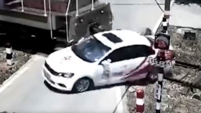 En un video de cámaras de vigilancia quedó registrado el momento de la dramática colisión de un tren contra un vehículo que presta el servicio de enseñanza en conducción. El accidente sucedió en la ciudad de Xiangtan, al sur de China.