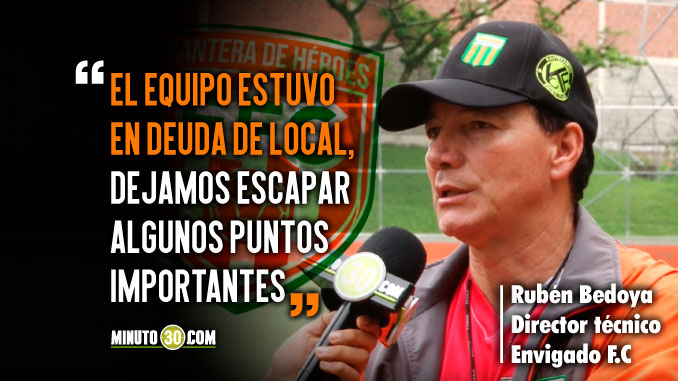 Rubén Bedoya, director técnico del Envigado F.C, declaró primeramente acerca del buen desempeño del equipo en el último partido de la Liga Águila 2018-I, el cual ganó 2-0 ante el Independiente Medellín, asegurando que el equipo quería cerrar bien este ciclo y dió su balance general sobre este primer semestre.