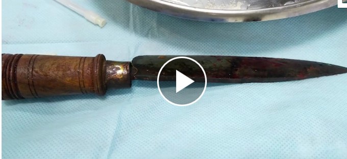 Vídeo18+ : Este hombre llegó al hospital con un cuchillo carnicero incrustado en su cabeza