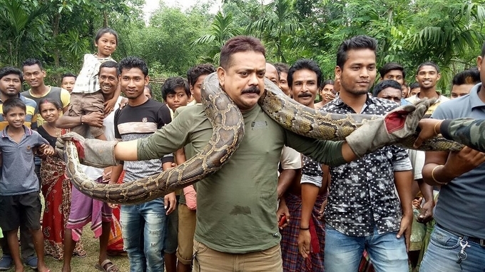 Sanjay Dutta, Guardia forestal en la India, acudió a un llamado en Bengala Occidental por una pitón que había devorado viva a una cabra, luego de capturarla los habitantes le pidieron una foto con el animal, fue en este momento cuando se distrajo y casi termina estrangulado.