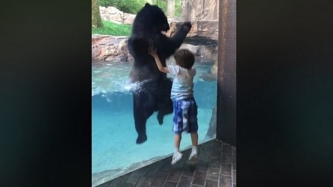 En video quedó grabado el momento en el que un oso gigante se divierte con un pequeño de 5 años durante su visita al zoológico, en el inocente juego los dos salieron ilesos.