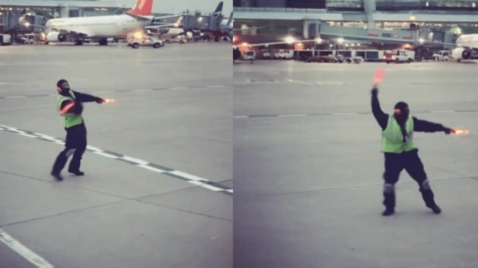 Video: Este operario lo deja todo en la pista de baile y en la del aeropuerto también