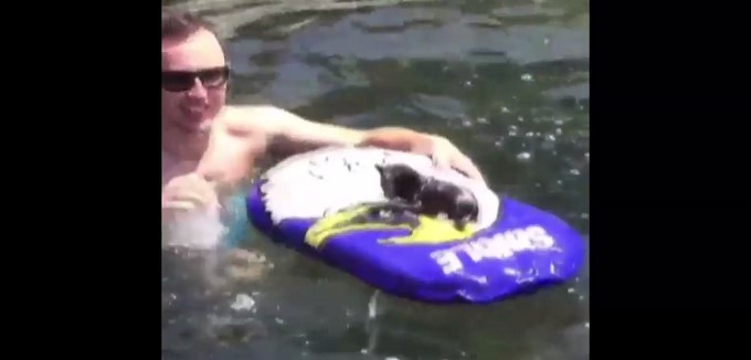 Al ver al indefenso animal, el hombre decidió subirlo en un tablero de goma, los mismos que usan los guardias costeros para rescatar a las víctimas.