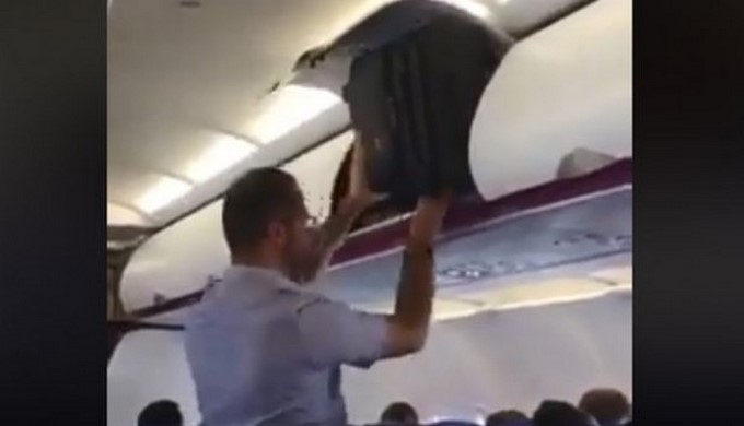 El pasajero de un avión fue captado en un momento hilarante que hizo las delicias del resto de viajeros. El hombre pasó un momento incómodo intentado meter el equipaje de mano en uno de los compartimientos, y solo fue “salvado” cuando una de las auxiliares llegó para indicarle la manera correcta de hacerlo.