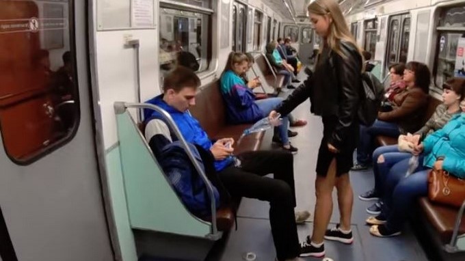 Según Dovgaliuk que los hombres ocupen más de un asiento es “agresión de género” y una “falta de respeto hacia las mujeres que están cerca”, para ella, rociarles el químico combinado con agua, esa es una forma de darles una lección.